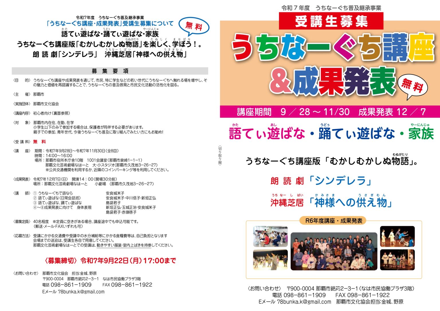 令和7年度 「うちなーぐち講座&成果発表」受講生募集